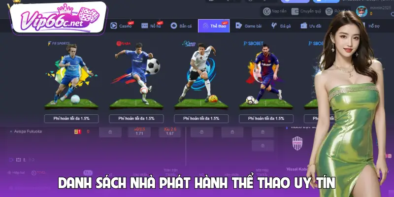 Thị trường cá cược thể thao ngày càng đa dạng, và việc chọn được một nhà phát hành đáng tin cậy là yếu tố quan trọng giúp hội viên trải nghiệm mượt mà và an tâm hơn. Dưới đây là các sảnh game nổi bật tại VIP66, phù hợp với cả người mới và những bet thủ dày dạn kinh nghiệm.